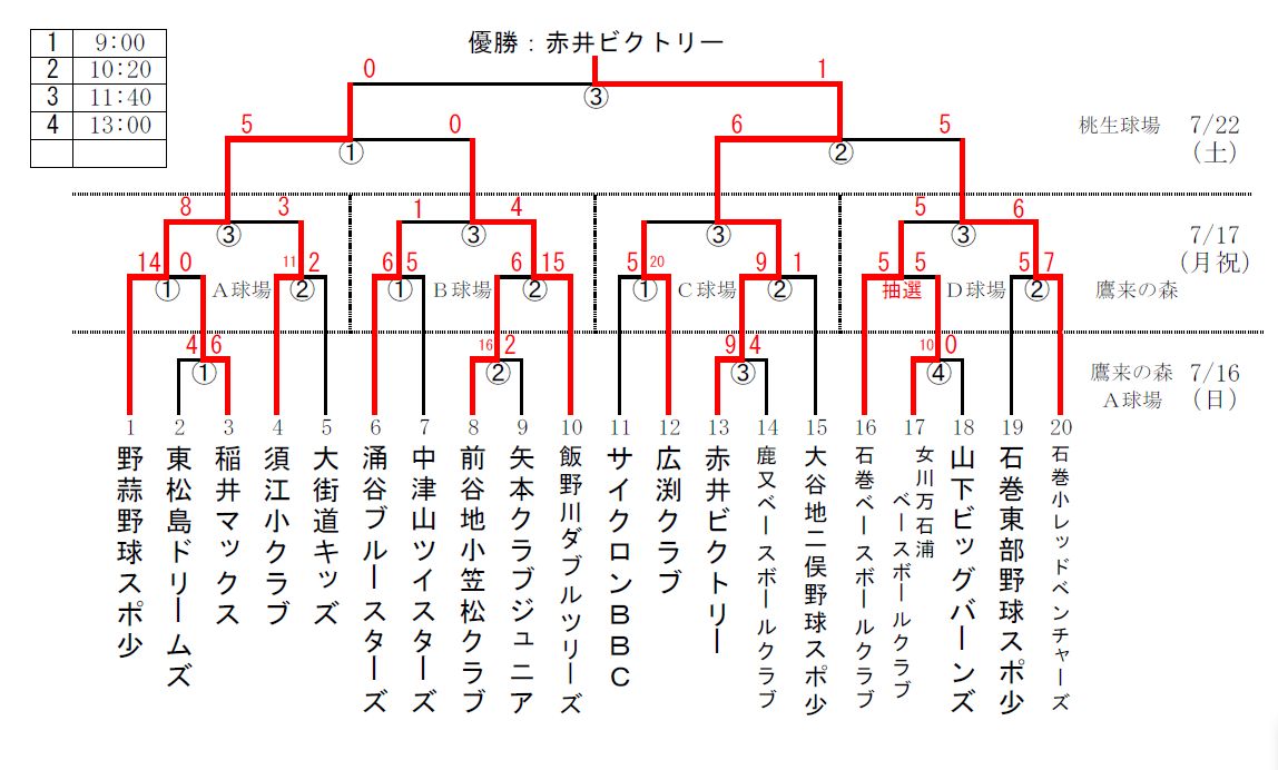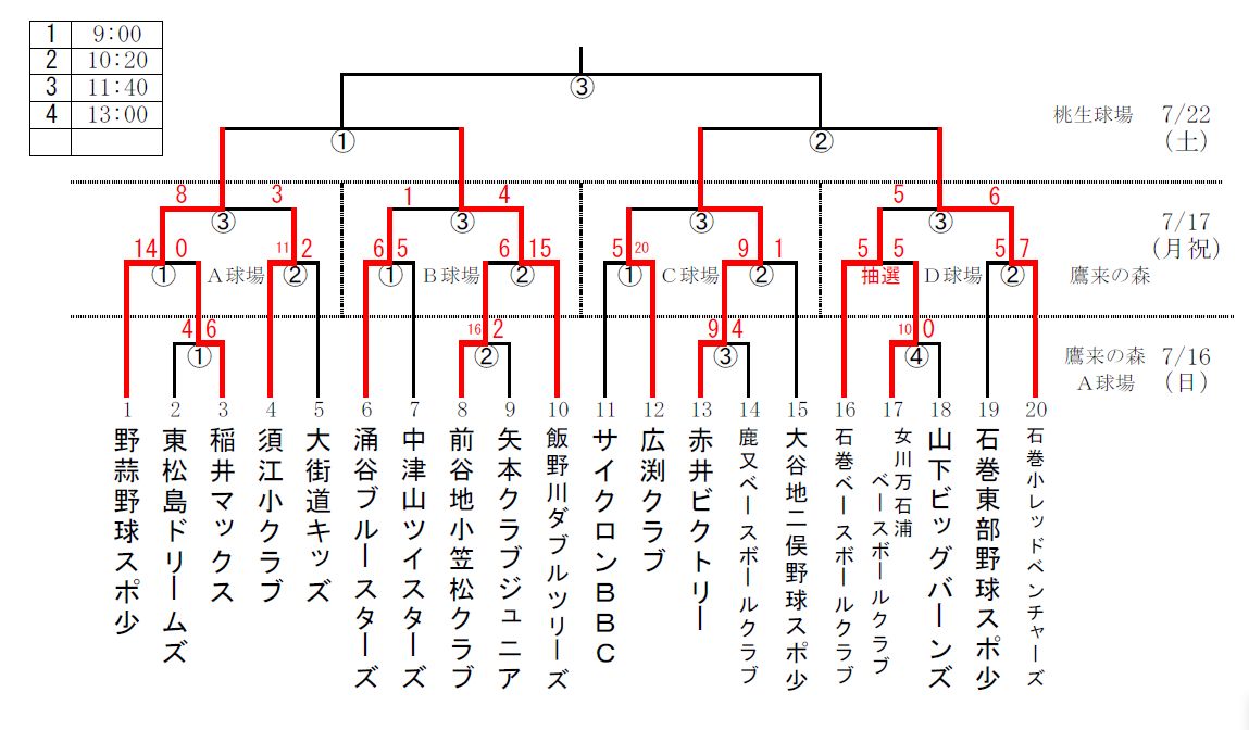 第21回少年新人野球石巻ブロック大会の途中経過です