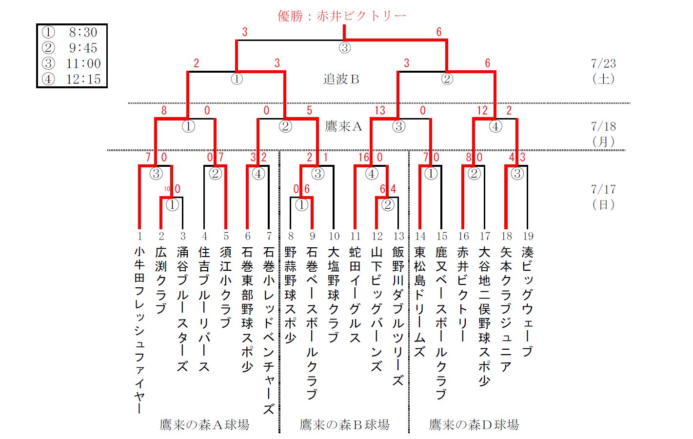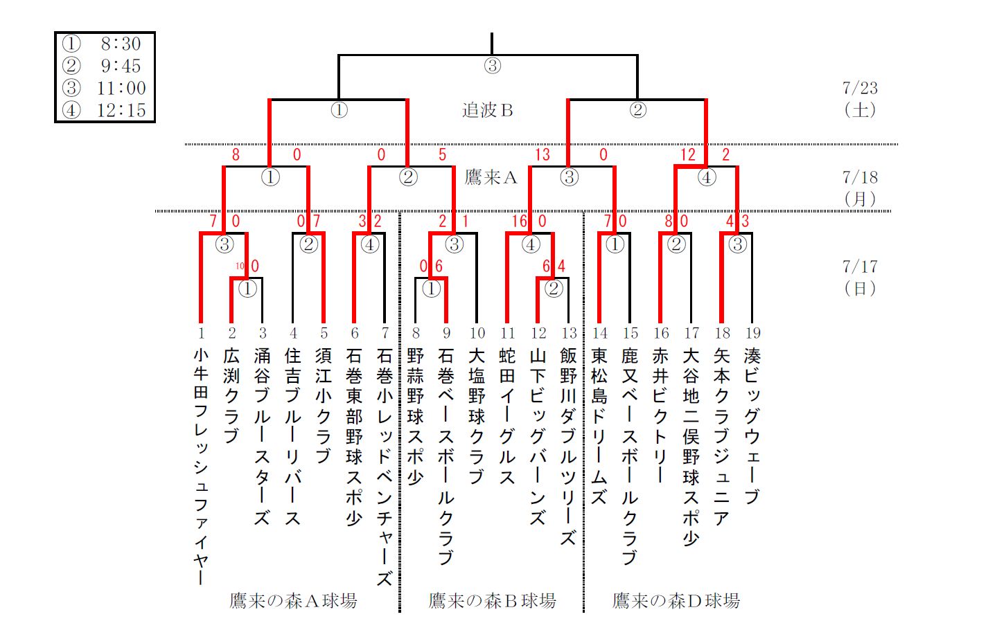 第20回学童新人野球石巻ブロック大会の途中経過をお知らせします。