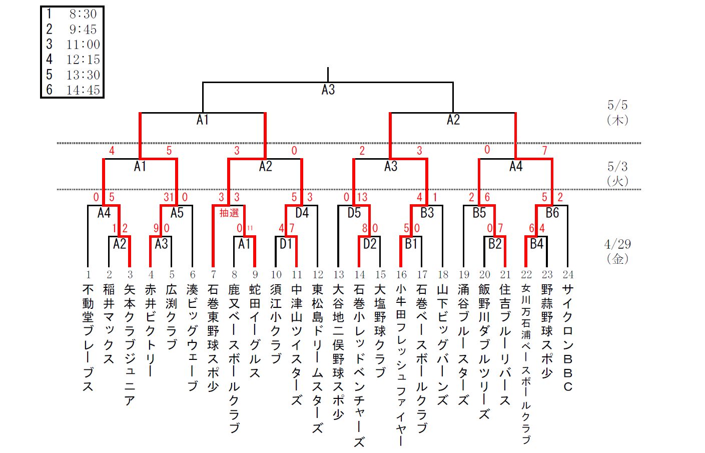 第39回少年野球石巻ブロック大会の途中経過をお知らせします。