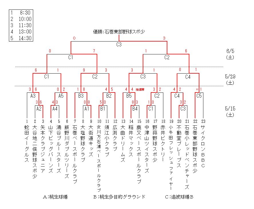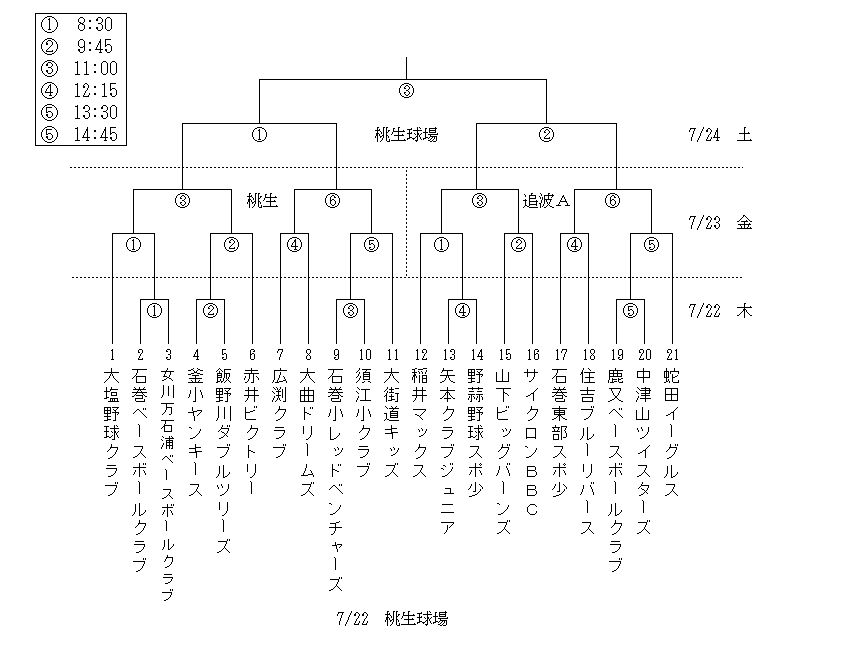 第19回少年新人野球石巻ブロック大会組合せ