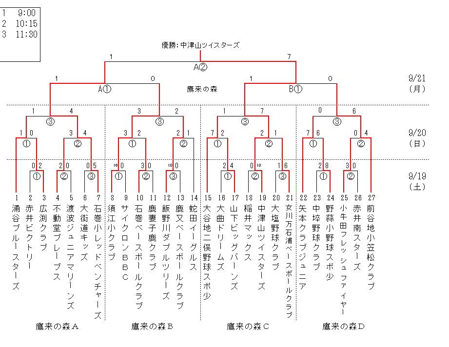 学童・少年大会の組み合わせ