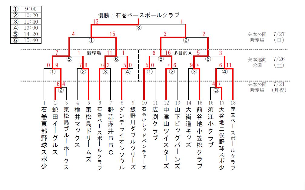 第23回 学童新人野球石巻ブロック大会の組み合わせです。