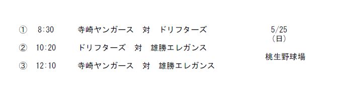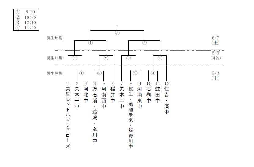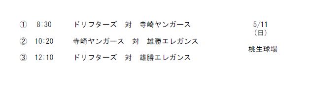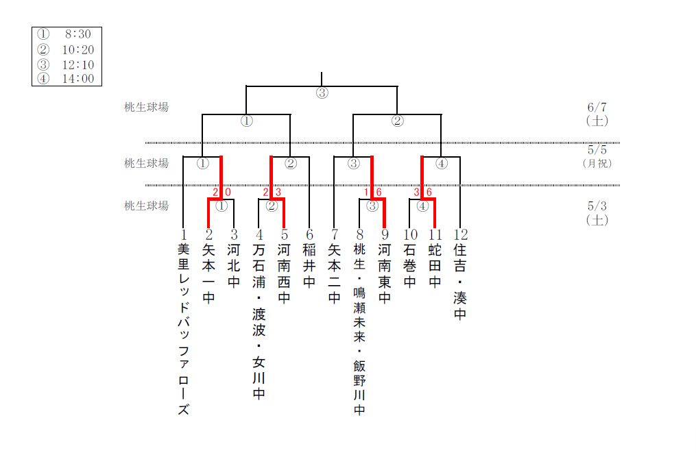 延期後の日程は下記のとおりです。 大会2日目:5月10日(土) 追波川河川運動公園A球場(奥)及びB球場(手前) 大会3日目:5月11日(日) 追波川河川運動公園B球場(手前)