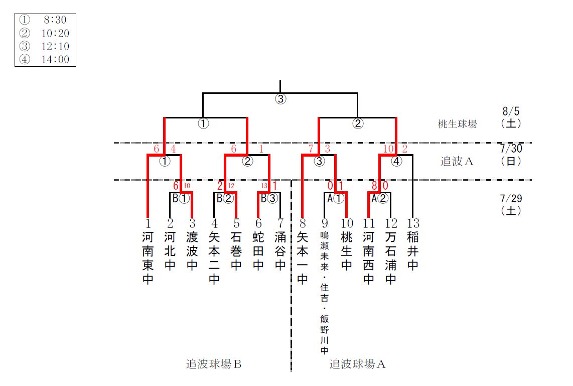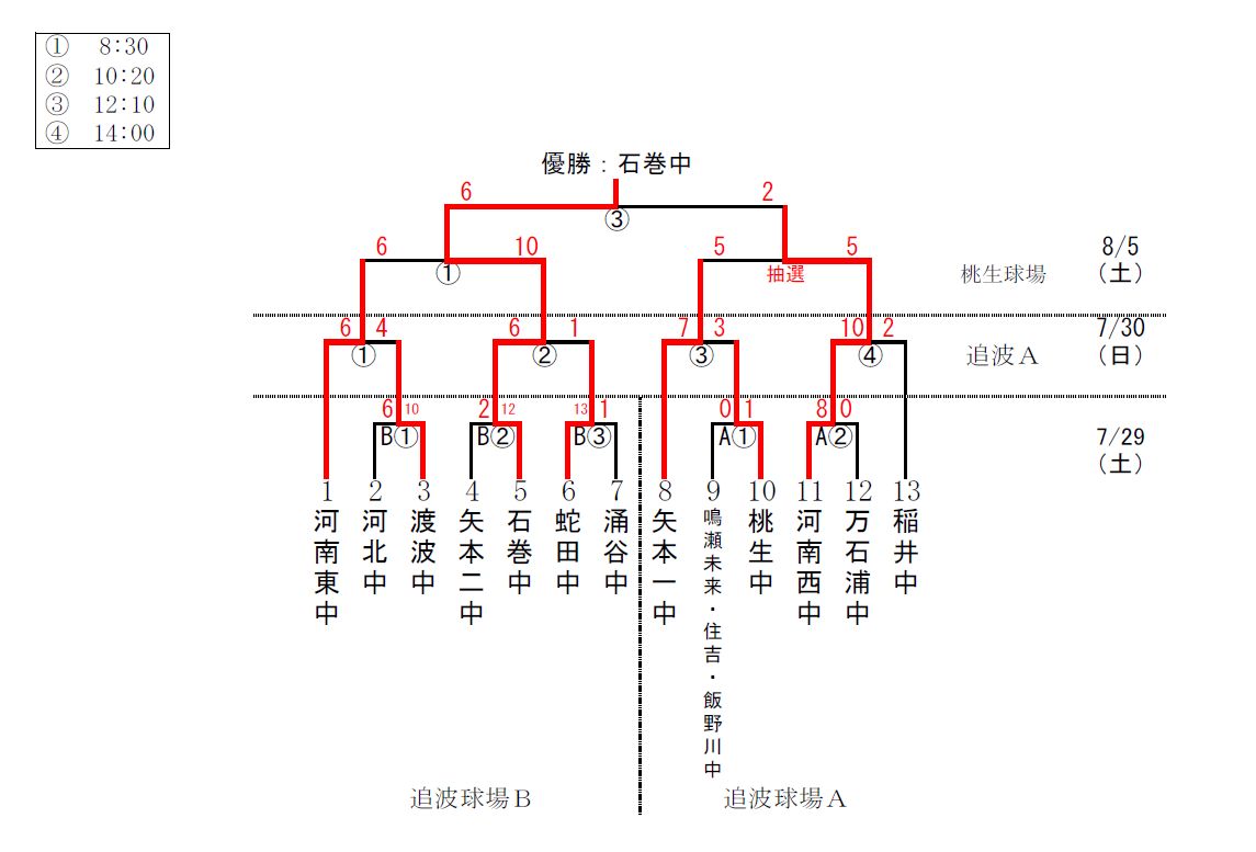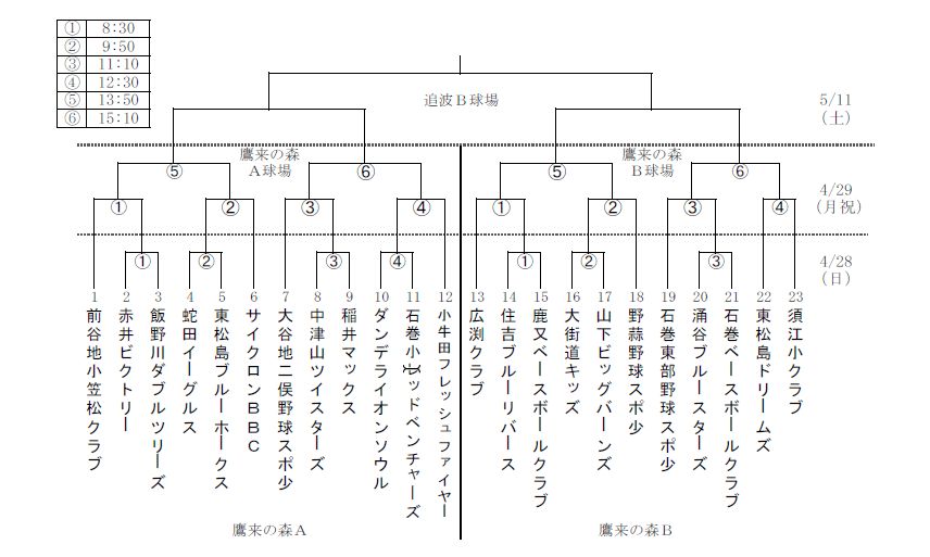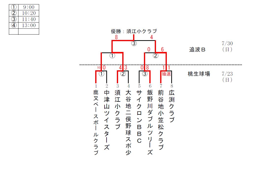 学童野球の抽選結果です。